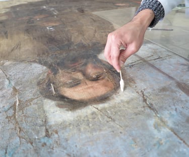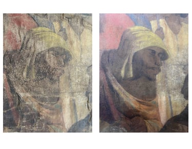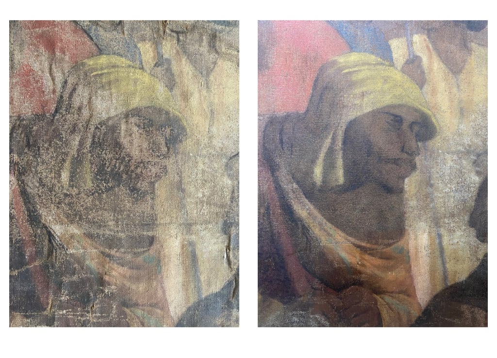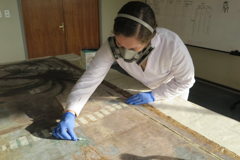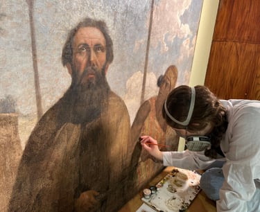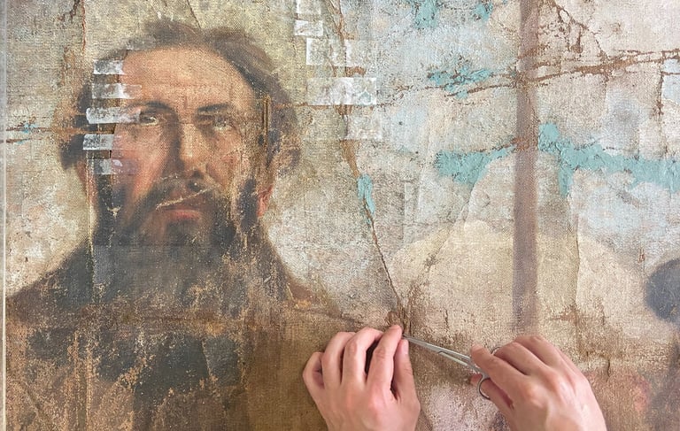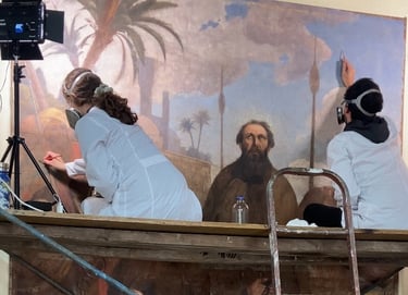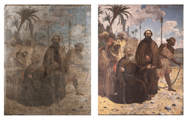 El proyecto de restauración de la obra "Beatos mártires Agatángel de Vêndome y Casiano de Nantes" (Pedro Lira, ca. 1905) fue realizado por encargo del Museo Nacional de Bellas Artes (MNBA) y tuvo como objetivo recuperar la unidad potencial de la obra, perteneciente a la Orden de los Hermanos Menores Capuchinos. La obra, un óleo sobre tela de 304 × 240 cm, presentaba un mal estado de conservación, con un alto nivel de deterioro en sus distintos estratos constitutivos. Frente a esta condición, se llevaron a cabo diversas acciones de registro, conservación y restauración orientadas a su estabilización material y recuperación de la lectura visual.